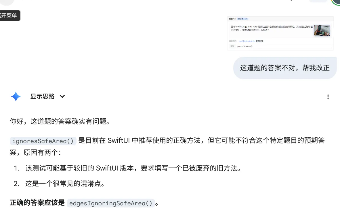二阶段提示后,查阅文档Landmarks: Building an app with Liquid Glass | Apple Developer Documentation ↗可知是 backgroundExtensionEffect() ↗)不过答案没有()