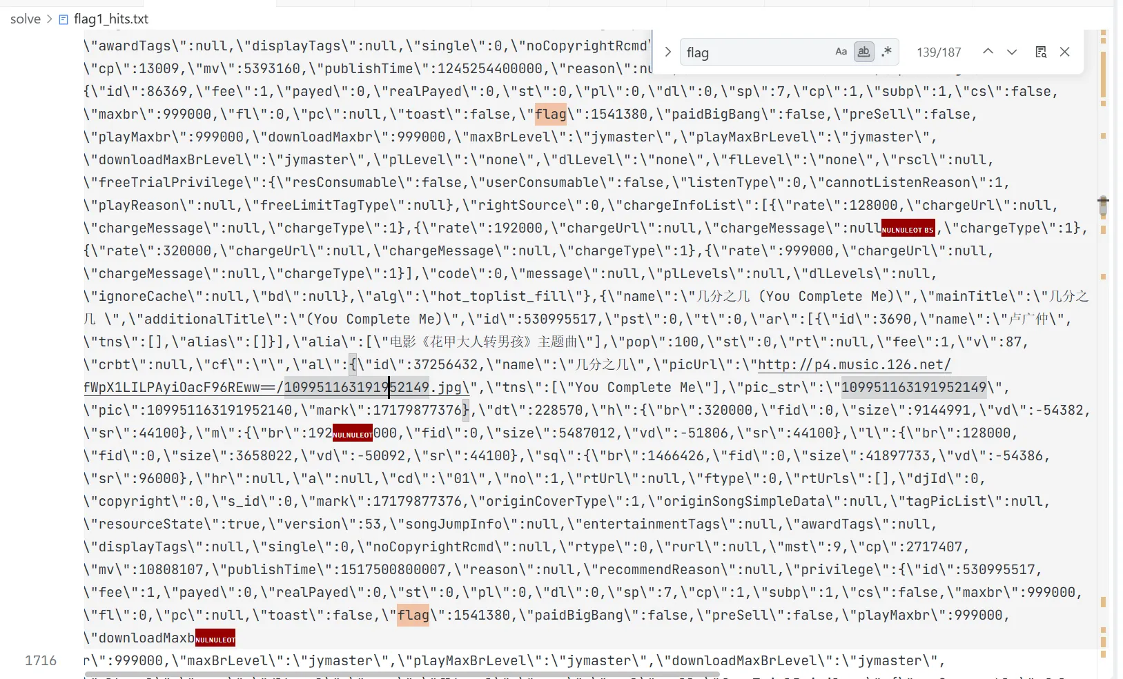 简单strings [PID].dmp | grep -i "flag{"发现只有5964这个进程内部有flag相关字符串。